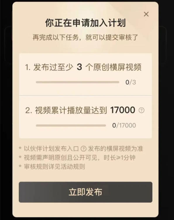 其实要满足上面两个限制条件并不难,无非发三个视频,累计播放量超过1.7w即可,但很多人跟我反映说:我明明就通过了上述的条件,为啥还不给我开通,原因在于你发的视频原创度不够高,这一点其实很多人都不知道,这是隐性条件。比如你发一些影视解说,如果做的不是特别好,哪怕播放量很高,远超1.7w,系统也不会给你通过,所以如果想要通过中视频计划,影视解说,视频剪辑这一类就不要发,会很难通过,除非你能做的比较好。