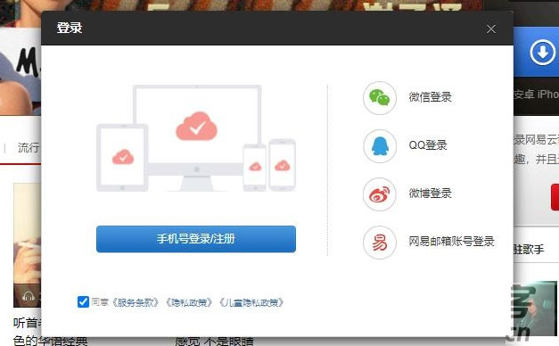 3、现在来到了登录页面,官方提供了多种登录方式,有手机号码、微信、QQ、微博、网易邮箱账号,选择其中一种方式登录即可。