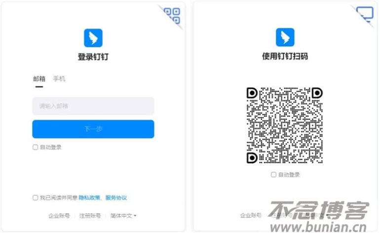 钉钉网页版提供了邮箱和手机号码登陆,如果手机下载了钉钉APP,可以使用手机钉钉客户端扫描图中的二维码进行登陆。