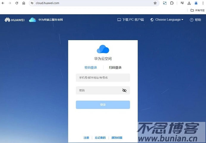 我们还可以通过浏览器打开华为云空间官网进行登录,这里提供了手机号码登录、邮箱地址登录、账号密码登录以及扫码登录,选择其中一种方式登录即可。登录成功后就可以进行云空间的数据查看以及管理操作。