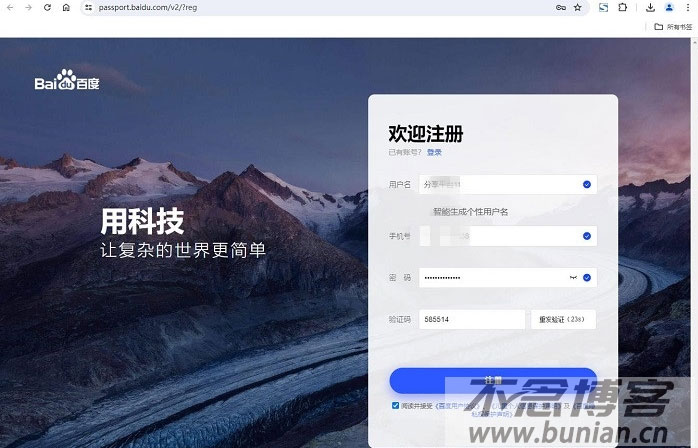 3、把手机收到的验证码填写到输入框中,百度账号就注册完成了。
