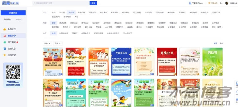 现在就登录成功了,在首页我们可以看到很多的模板,可以选择行业、用途、热点来进行筛选。