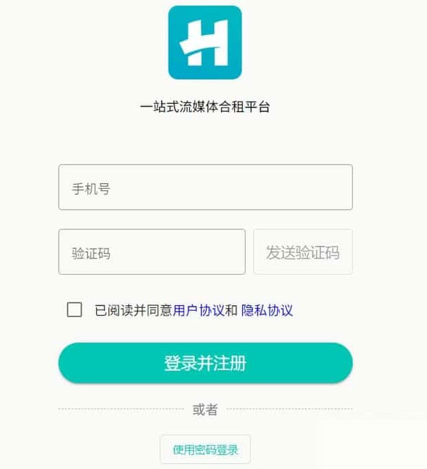 2、在弹出的窗口,填写手机号,获取验证码并填写,勾选同意条款,点击“登录并注册”。
