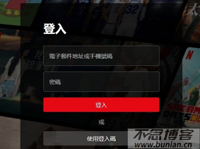 2、进入Netflix账号密码输入界面,我们输入奈飞账号密码,点击“登入”。