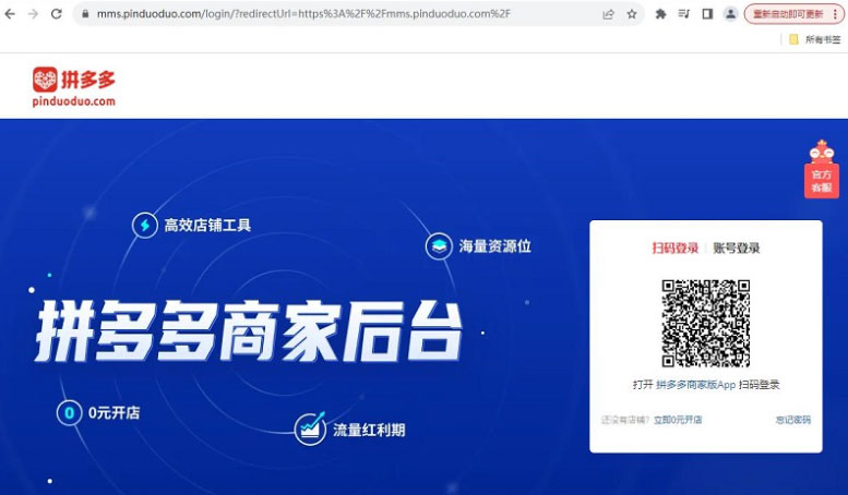 如果你是商家想要在拼多多网页版登录,使用浏览器打开以上的拼多多官网网址即可进入。已经注册了商家拼多多账号的用户们,使用手机端拼多多商家版APP扫码即可登录,也是选择使用账号密码进行登录。