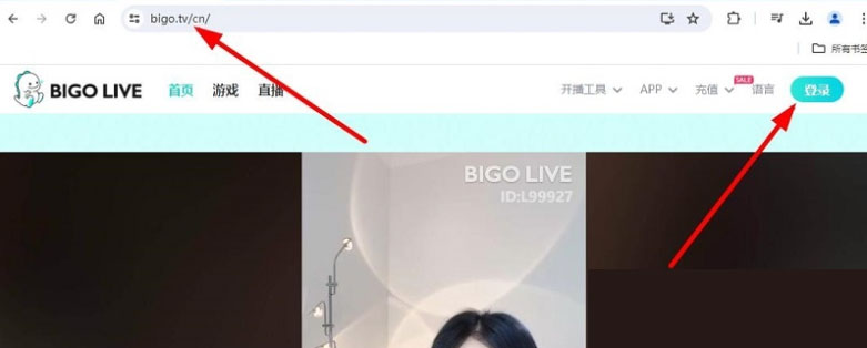 1、首先需要确保你的上网工具连接成功,然后访问bigolive官网,进入后点击 右上角的“登录”按钮。