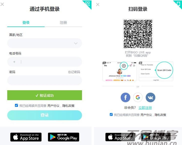 二维码登录:打开手机端下载的bigolive app,在使用扫描功能扫描官方提供的二维码,就可以成功登录。