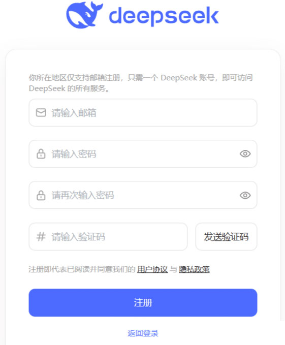DeepSeek使用邮箱注册账号