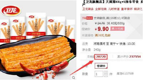 我们会发现,有时候,面对质疑,辩解不是办法,反而有可能越描越黑,既然藏着掖着质疑会越来越多,为什么不大方一点,公开来,于是我们可以看见如今卫龙在天猫的月销量 ↓↓