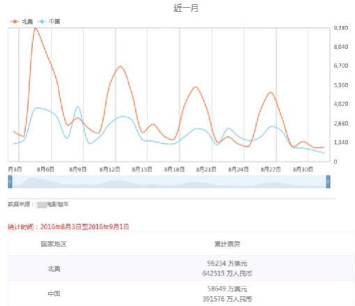 从上图数据来看,一个月时间内,单单在中国电影行业里,从这些电影上映以来,所有这个月电影产生的消费金额高达,391576万人民币,也就是大概有39个亿元。特别是最近火爆的电影《谍影重重5》和《冰河时代5:星际碰撞》的票房贡献。虽然部分人认为这些电影数据不一定准确,但是也值得我们拿来参考下。所以呢,在39个亿里面,线下不正当渠道从中占到多少呢,具体数据占到多少我也说不准,是吧?