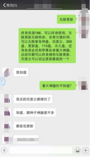 交钱后,所谓的总代理就会问你要百度云账号,没有账号的,他就会在公众号发一篇教程给你,叫你去学去弄。然后他就把你邀请到百度云盘群里,教你怎么下载保存群里更新的电影电视等等各种资源片。接着就会扔3—7个微信公众号给你,叫你一定要关注,什么方法课程指导也会在这些公众号里,包括一些特殊文件怎么分享发送,规避百度云的相关检测等等细节,还有后期什么活动最新消息的也在这些公众号里,而这些号有大号有小号,都是电影号。