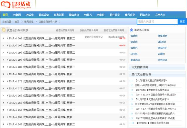 当大部分人知道能够通过网络引擎搜索,找到一些大平台的会员时,是不是意味着我们能在这方面下一点工夫?我们可以针对这一群人做一个网站,然后提供一些账号和密码。自己搞不到资源没关系,只需要把别人的搬过来就行了,这里的流量也很大。提出这个办法是给大家一个思路,大家去参考一下,说不定琢磨后就此展开了一个全新的项目。