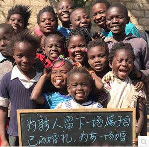 视频内容:就是十来个非洲小朋友举着一块黑板,然后黑板里面写着小伙子表白的内容,但是却是由这一圈非洲小朋友一起喊出来的,而且使用不怎么标准的中文喊出来的,听起来倒是别有一番风味。表白语结束之后还赠送了一句齐刷刷的“耶”。
