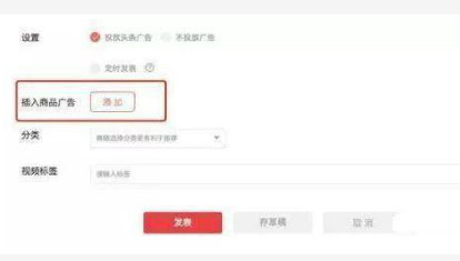 将素材视频上传到头条之后,可以看到有一个插入商品的提示框,然后将我们要推广的产品链接放上去确认即可,之后平台会自动处理。