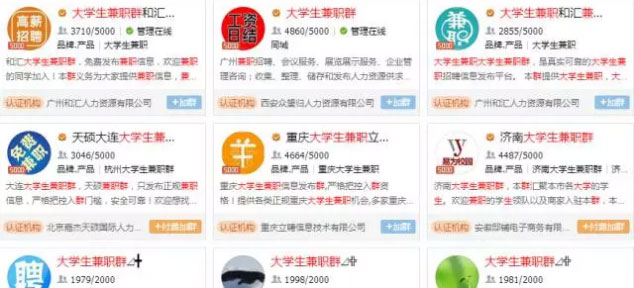 线上:主要是本校的各种交流群+兼职群为主,也可以是本地的大学生兼职群等等,类似这样的群是有很多的,当然是要自己筛选的,很多群都是挂羊头卖狗肉,主要是加一些在群里面比较活跃的同学,然后作为自己的基础用户。